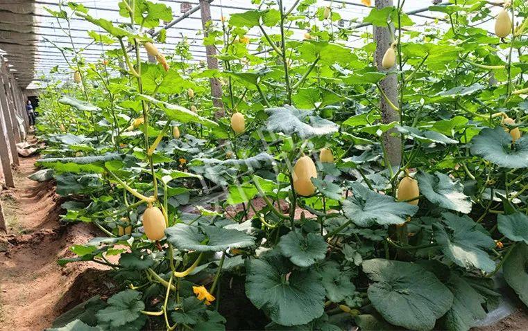 ▲“黃金筍瓜”在溫棚早春栽培,