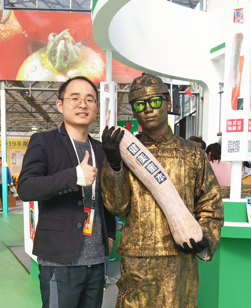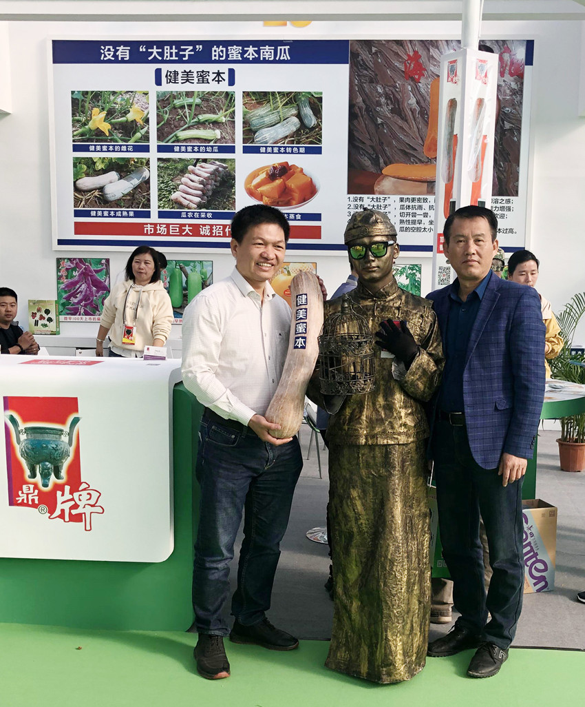 活動(dòng)現(xiàn)場,鼎牌展位(A2)在展示大廳脫穎而出??蜕虃冏叩秸古_(tái)前紛紛停下腳步,被鼎牌獨(dú)創(chuàng)的“沒有大肚子的健美蜜本南瓜”所吸引。
